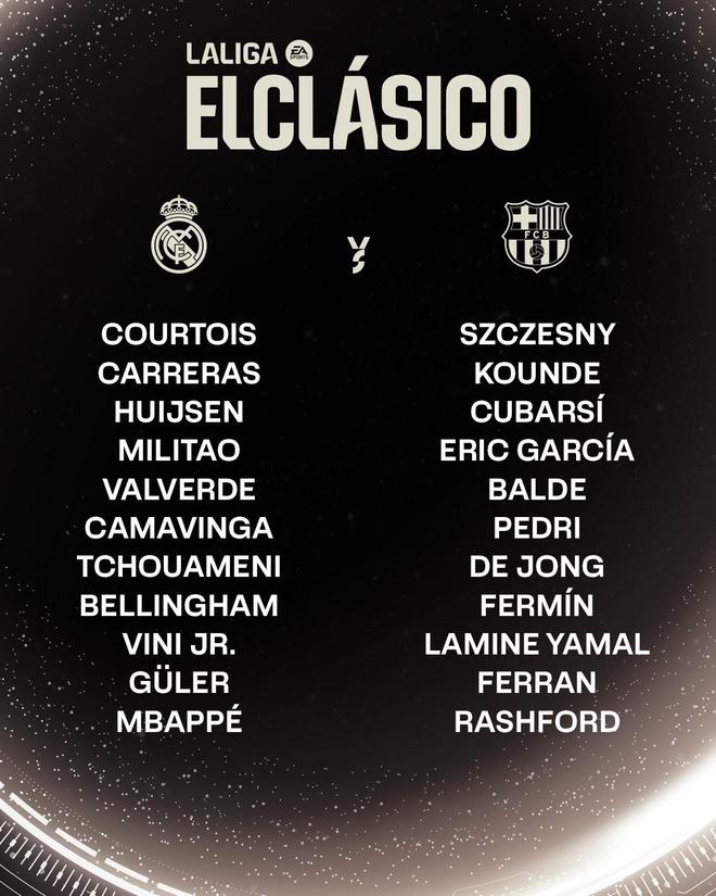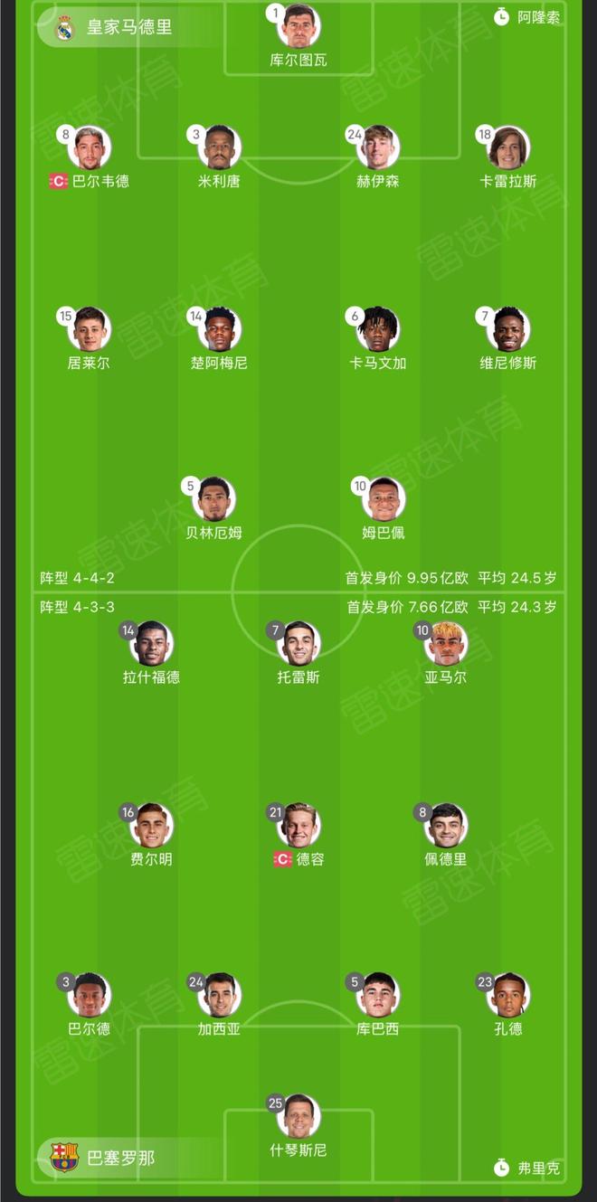 雷速体育10月26日讯 北京时间今晚23点15分,西甲国家德比,皇马主场对阵巴萨。赛前,双方首发出炉。