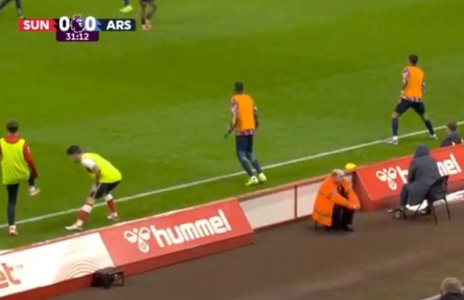 英超第11轮桑德兰主场2-2逼平阿森纳,为了限制阿森纳的界外球战术,桑德兰俱乐部特意缩短了广告牌和场地之间的距离。